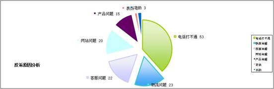 我们委托乔应涛先生随意搜集了2011某一天“京东商城”的一些关于客户声音的微博。搜索时间为从12月20日22:59到12月21日22:45,共搜索出122条客户原创声音,针对这122条原创声音,只有两条是看似“表扬”的内容,其它均为“投诉类”统计结果如下: